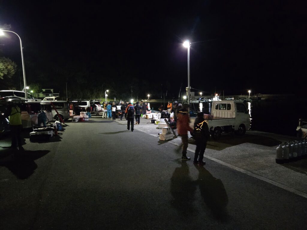 人によっては前夜から到着して車で睡眠をとる人もいるので、乗り場に近い場所は早めに埋まってしまうけど、水色の路駐エリアでも特に荷物の移動で苦労することはない。