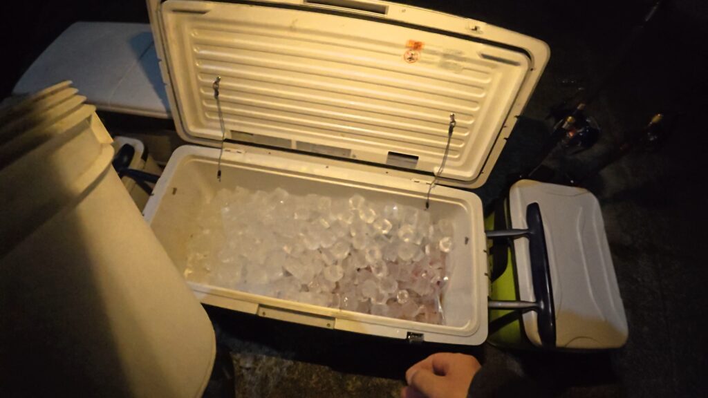 みんな平等に1つづつ氷バケツを取り自分のクーラーに入れましょう。