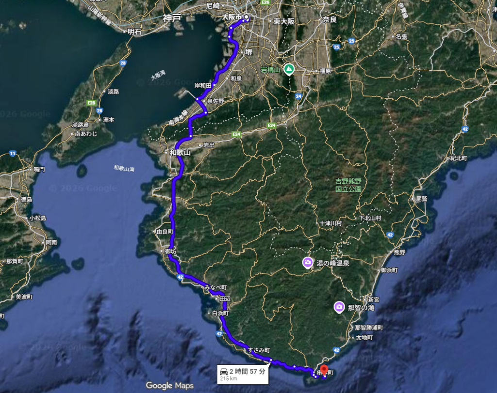 - コンビニ(大阪方面からの道中)はすさみ南インターチェンジを降りてすぐの ” ローソンすさみ江住店 ” と串本海中公園を過ぎた頃の ” ローソン串本町高富店 ” の2つしかないので、気を付けて!