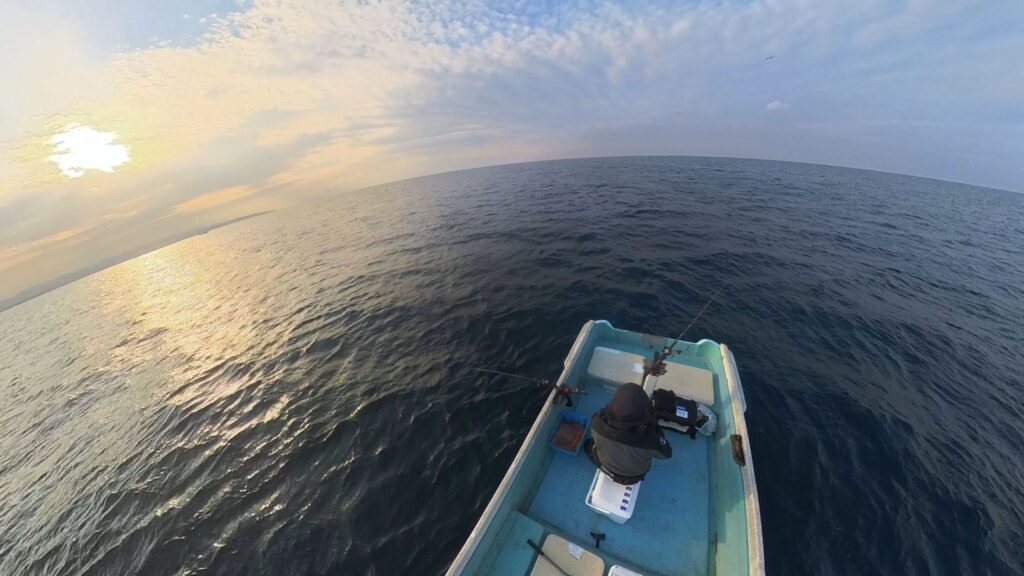 動力はついていない船なので、勝手に移動はできないけど、親船が魚影の濃い、実績のある場所に連れてきてくれるので、そのポイントは折り紙付きだ!