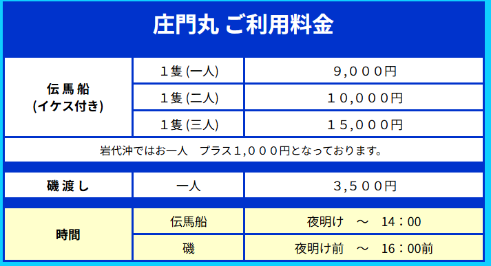 庄門丸の伝馬船は前払いになります。