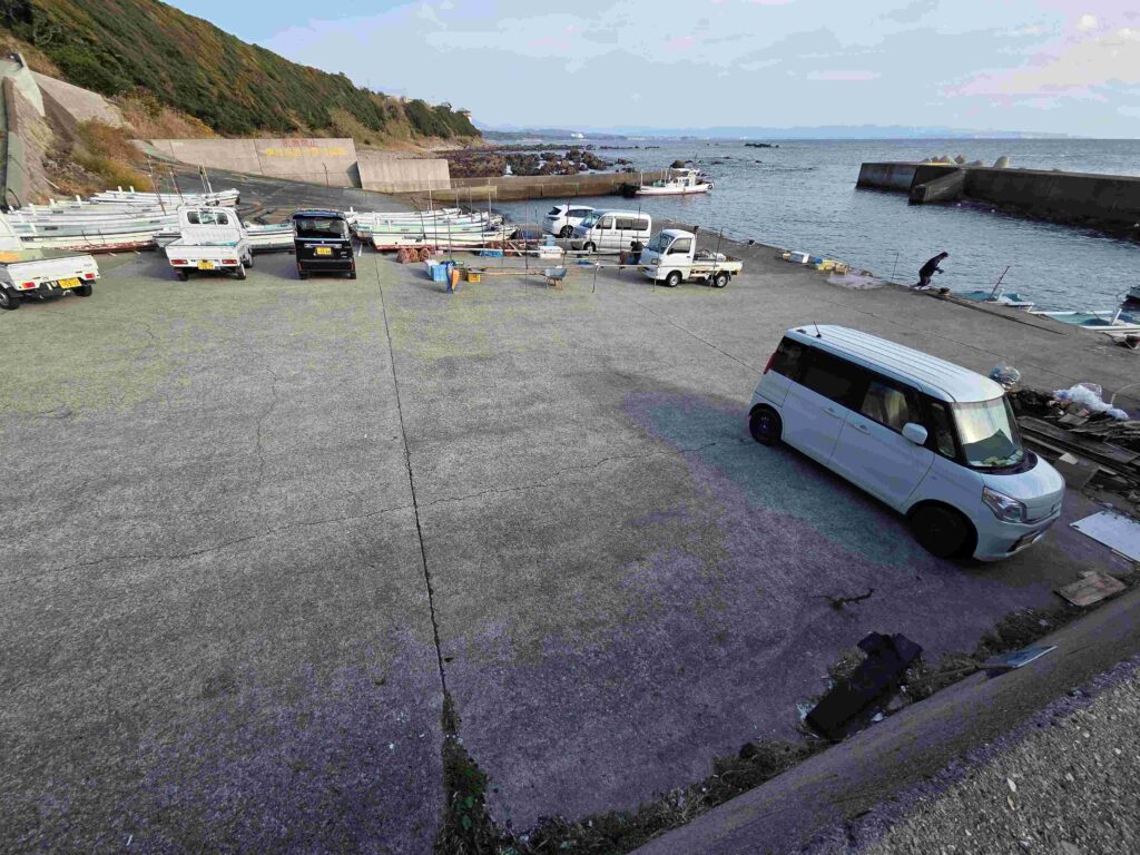 大きな漁港ではないが、ある程度の車を止めれるスペースはありますので、できる限り詰めて駐車しよう。特に厳格なルールはないけど、船頭さんたちの指示があればそれに従おう。